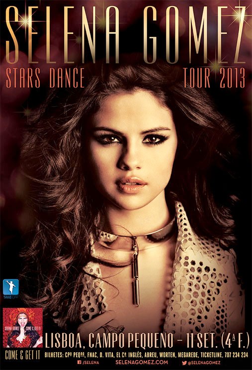A mundialmente conhecida actriz e cantora SELENA GOMEZ irá actuar pela primeira vez em Portugal num concerto único a acontecer no Campo Pequeno a 11 de Setembro de 2013. Este espectáculo, integrado na "Stars Dance Tour 2013”, irá revisitar todos os maiores êxitos da artista, assim como apresentar o seu novo álbum que será brevemente editado em Portugal.